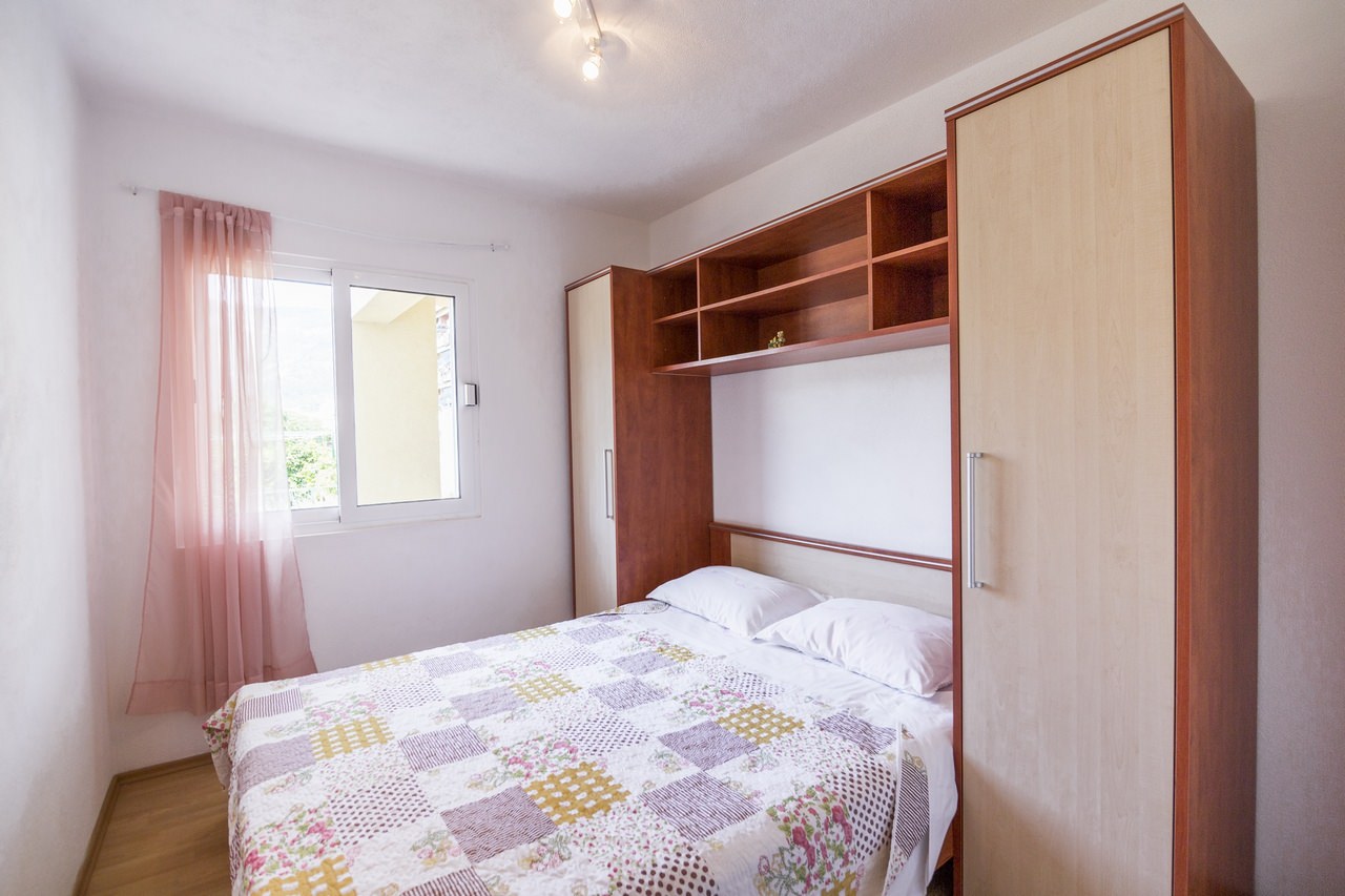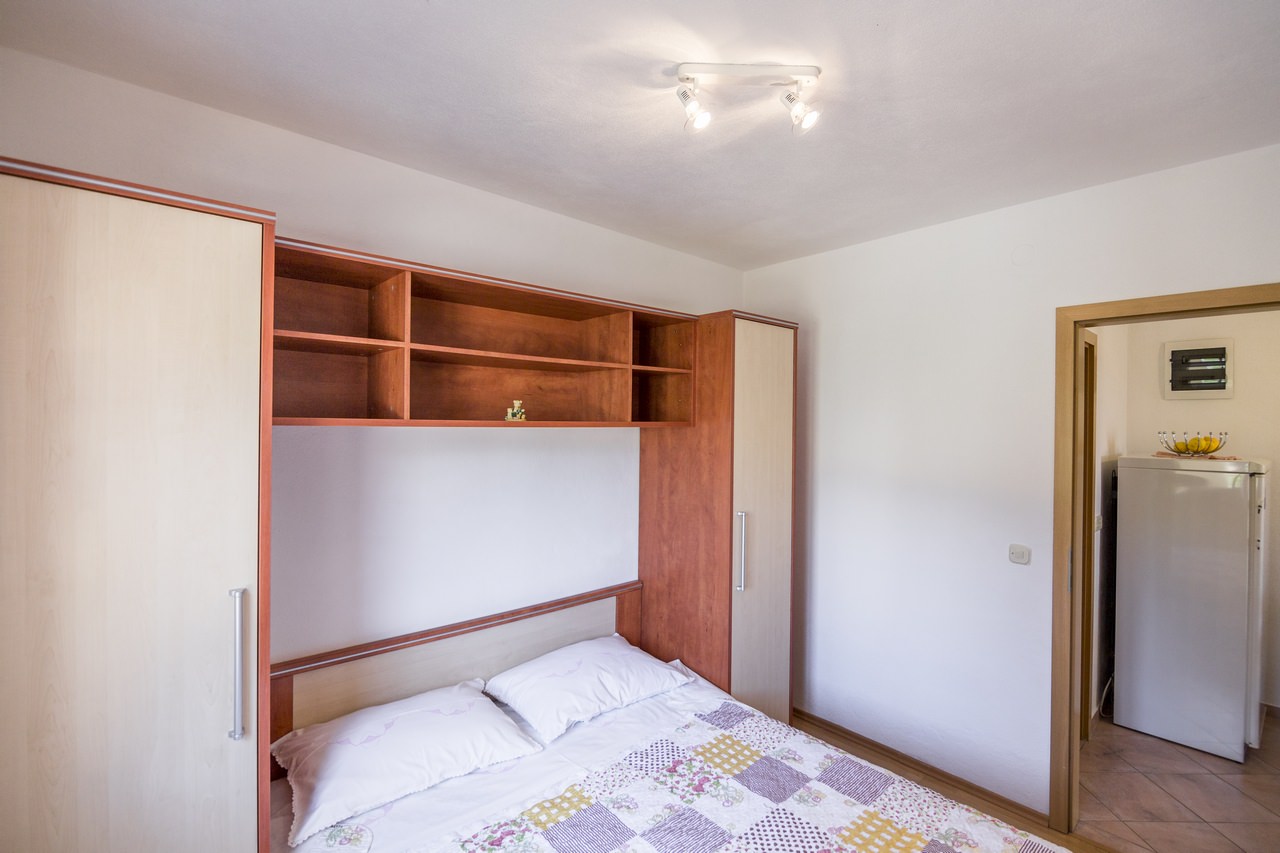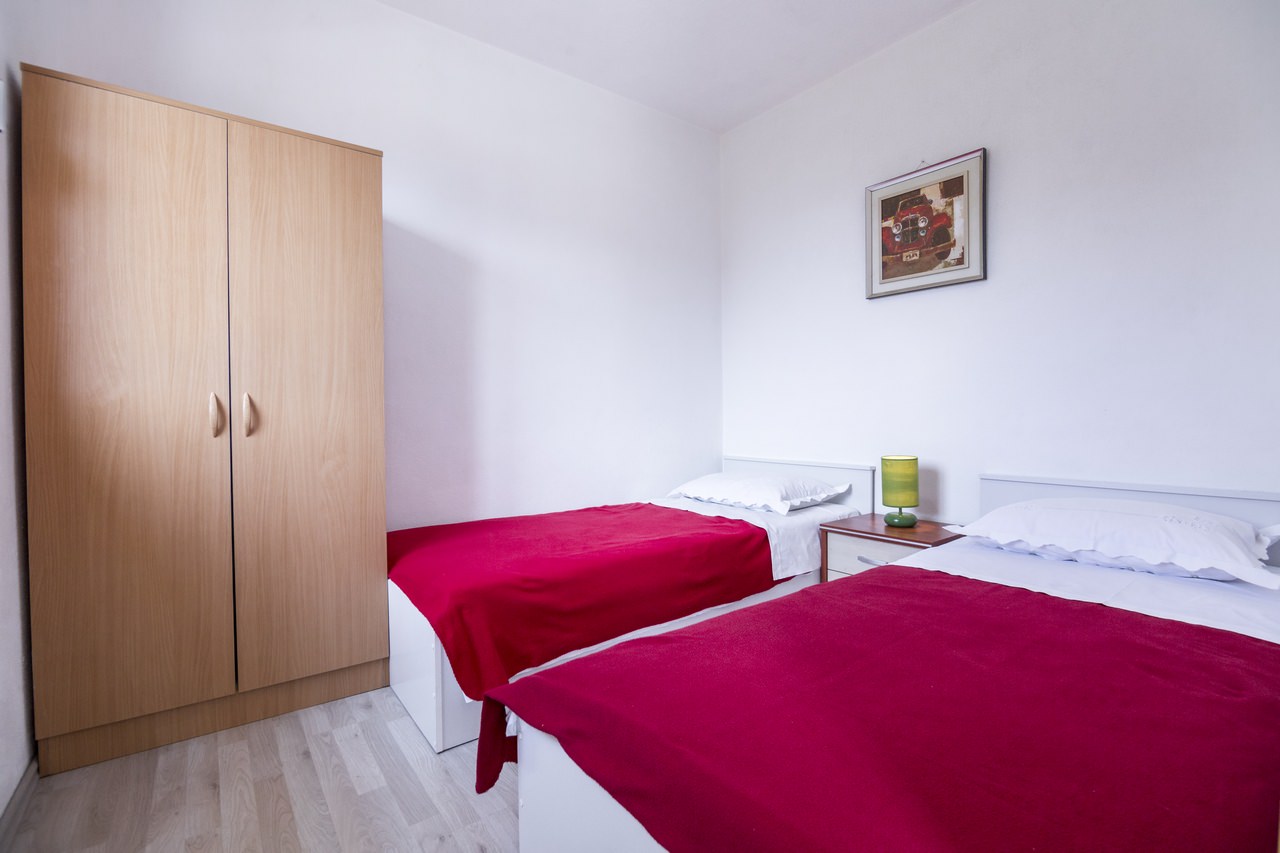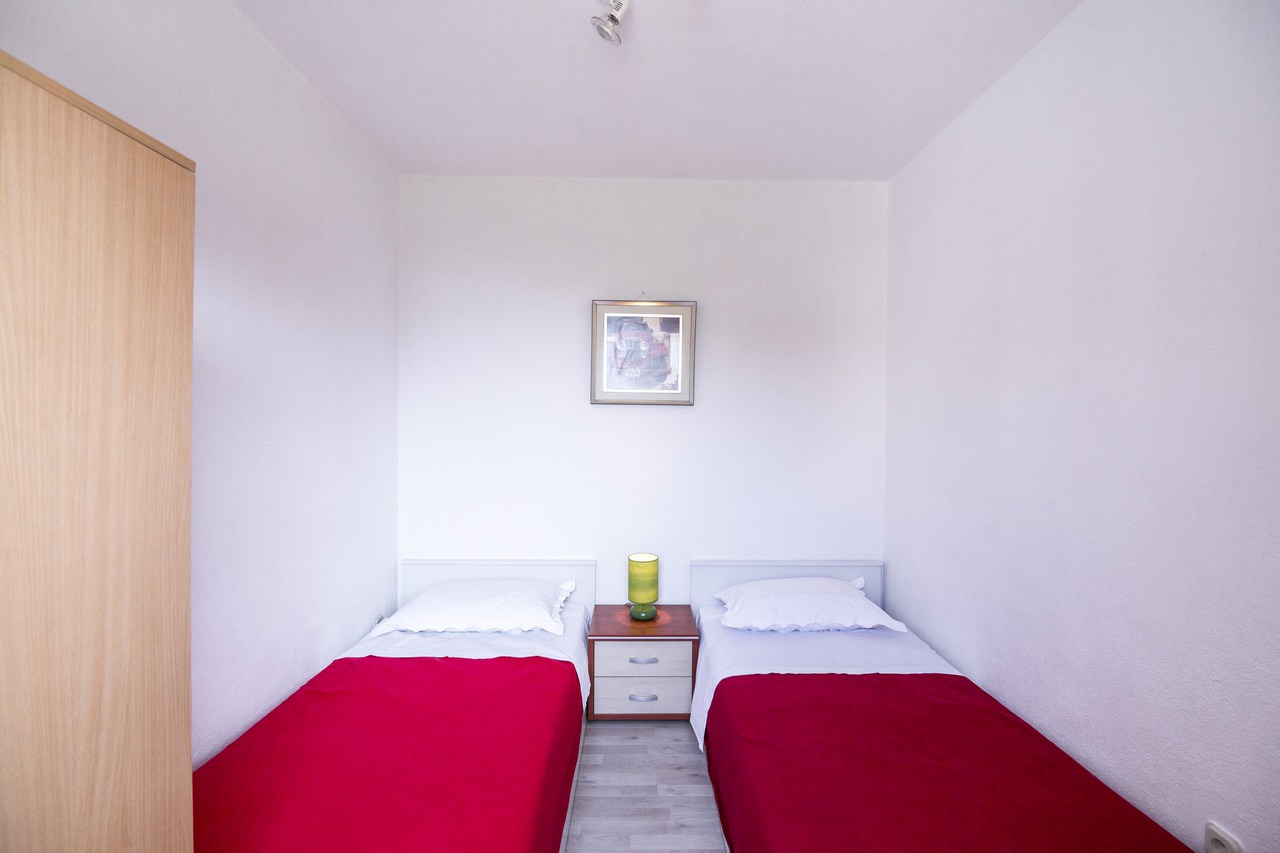 U sklopu apartmana nalaze se dvije spavaće sobe: jedna s bračnim krevetom, a druga s dva odvojena kreveta. U dnevnom boravku, na raspolaganju su Vam: TV, klima uređaj te kauč na razvlačenje, koji služi i kao pomoćni ležaj.