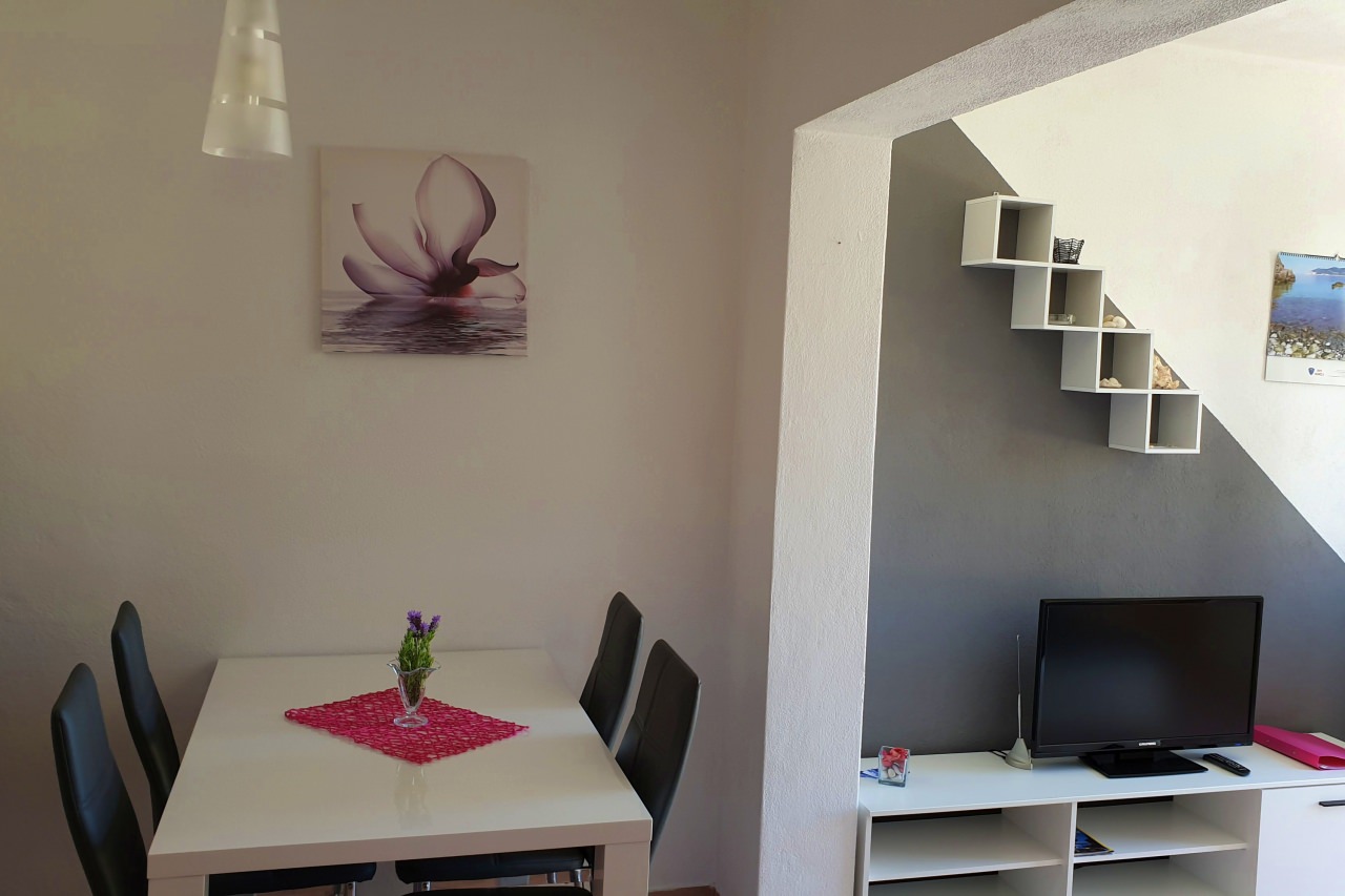 Također, u sklopu apartmana su i opremljena kuhinja s blagovaonskim stolom i stolicama, kupaonica i balkon s pogledom na more. Apartman Roza ima zaseban ulaz, besplatan wireless internet kao i osigurano parkirno mjesto. Na raspolaganju Vam je i vanjski roštilj, koji se nalazi u vrtu naše kuće. Kućni ljubimci su dozvoljeni.